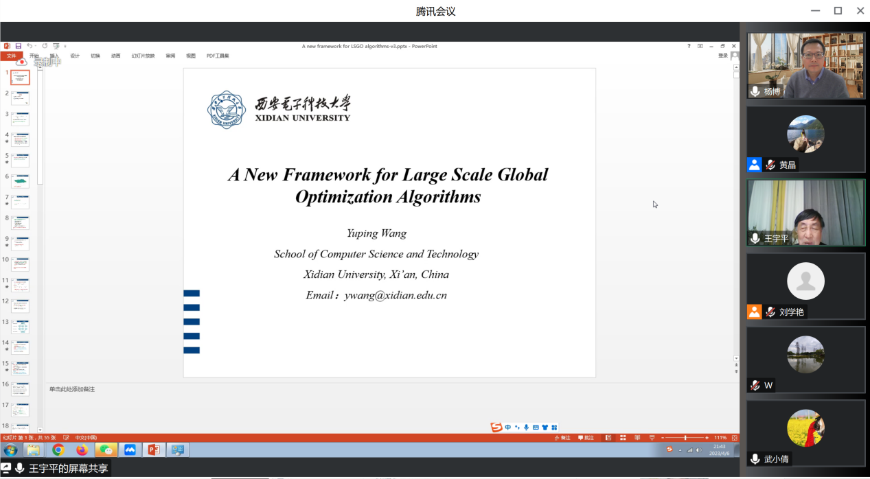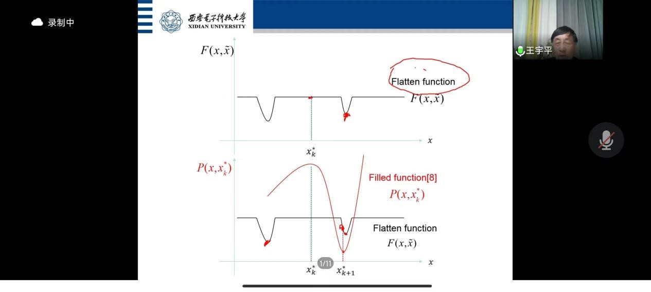 大规模全局优化问题在实际中非常普遍,很多科学和工程问题(包括机器学习、数据挖掘、计算机视觉等领域的重要问题)都可以建模成一个大规模全局最优化问题。然而,全局最优化问题,尤其是大规模全局最优化问题的求解是目前的一个挑战性问题。已有算法往往只能求出一个局部最优解,不能求出全局最优解。王宇平教授介绍了他们团队求解大规模全局最优化问题的一个新的算法框架,通过分、治、合三个步骤,该框架不仅可以求解白盒问题,也可以求解黑盒问题,为求解大规模全局最优化问题提供了一种可行方案。报告的最后,王老师提出未来工作的思路与大家讨论。