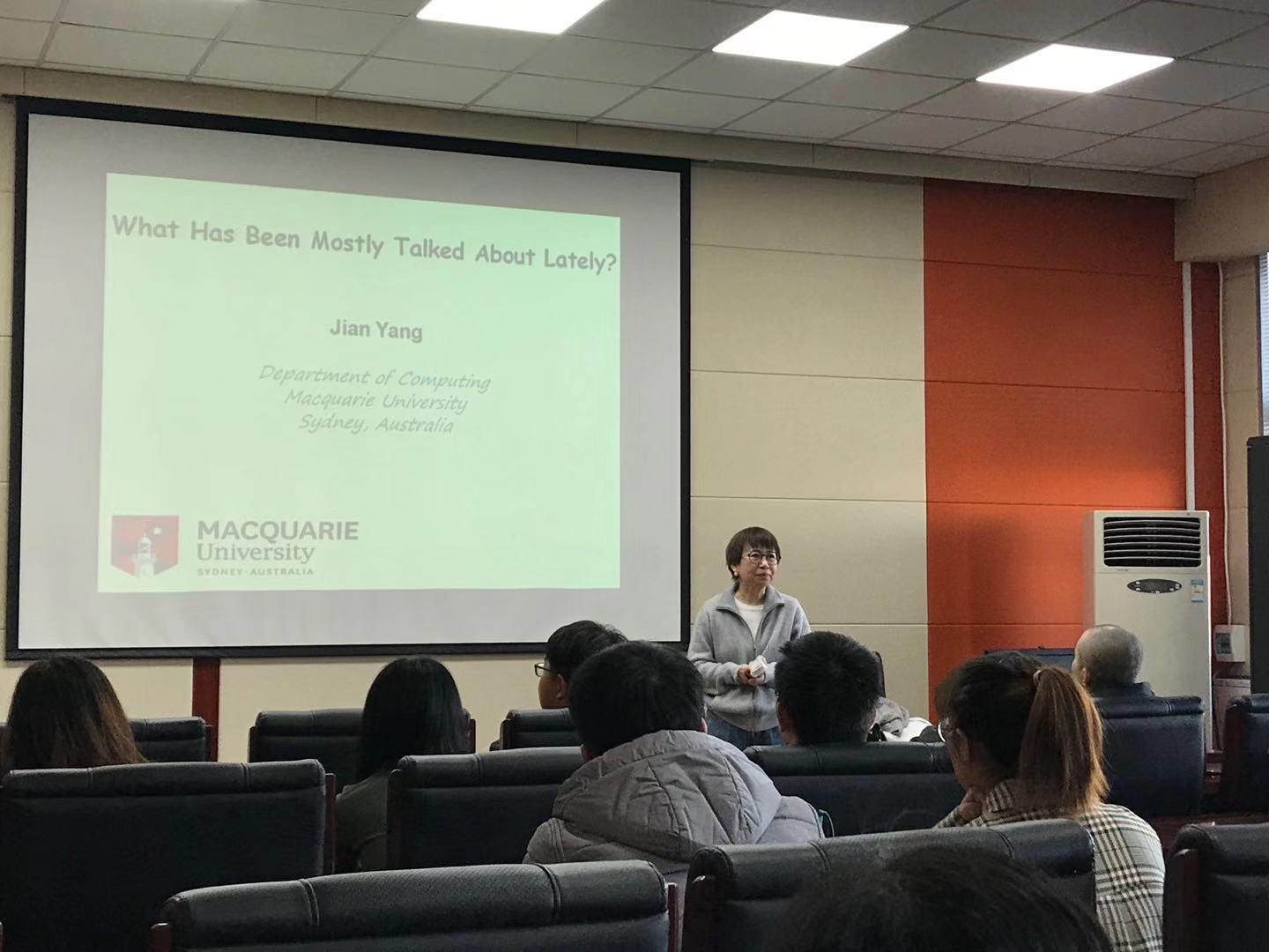 邀请,在计算机楼A521作了题为“Twitter中的主题派生”的学术报告。
