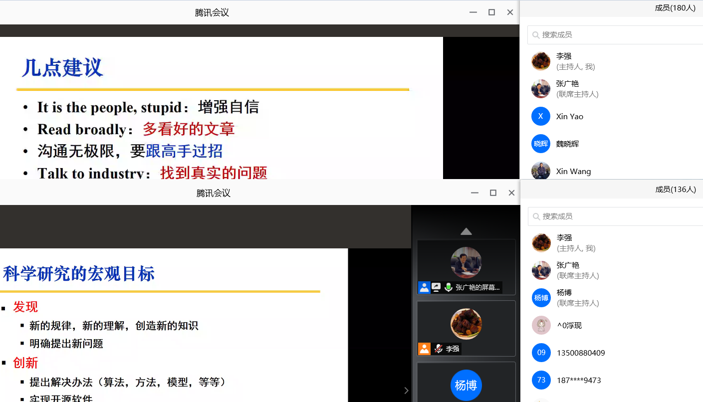 邀请,在线上作了题为“科研工作体会”的科研报告。学院共有180多位教师、在站博士后、高年级博士生在线参与了讲座。