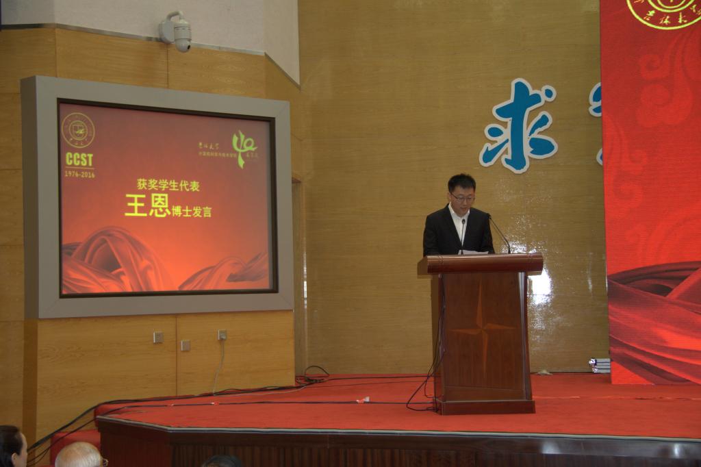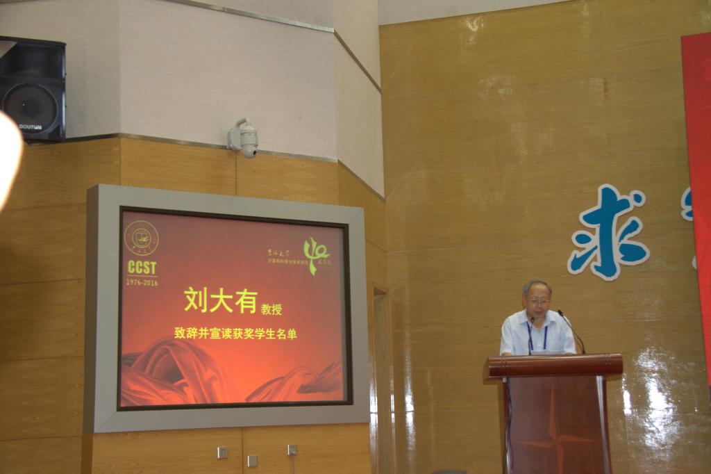 刘大有教授代表吉林大学王湘浩奖学金管理委员会致辞。他介绍了王湘浩院士在科学上的杰出成就,在教育事业上建立的卓越功勋,以及王湘浩奖学金的由来发展,并感谢社会同仁和广大校友的无私奉献和大力支持。接着,刘大有教授宣读了2016年王湘浩奖学金获奖名单,希望获奖学生能够珍视荣誉,戒骄戒躁,锐意进取,争取更大的成绩。