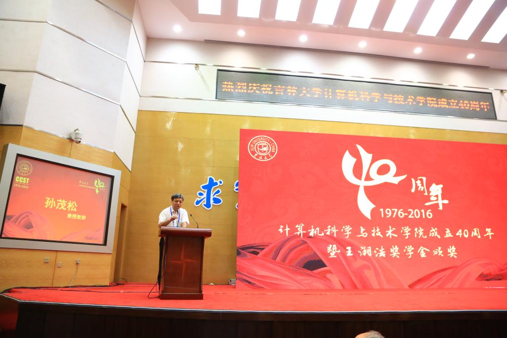 清华大学计算机科学与技术系党委书记孙茂松教授致辞。他回顾了吉林大学计算机学院的辉煌历史,尤其是人工智能方向在中国计算机发展史上的重要推动作用。他还谈到王湘浩先生的多才多艺,尤其是在红学研究领域的深厚造诣。