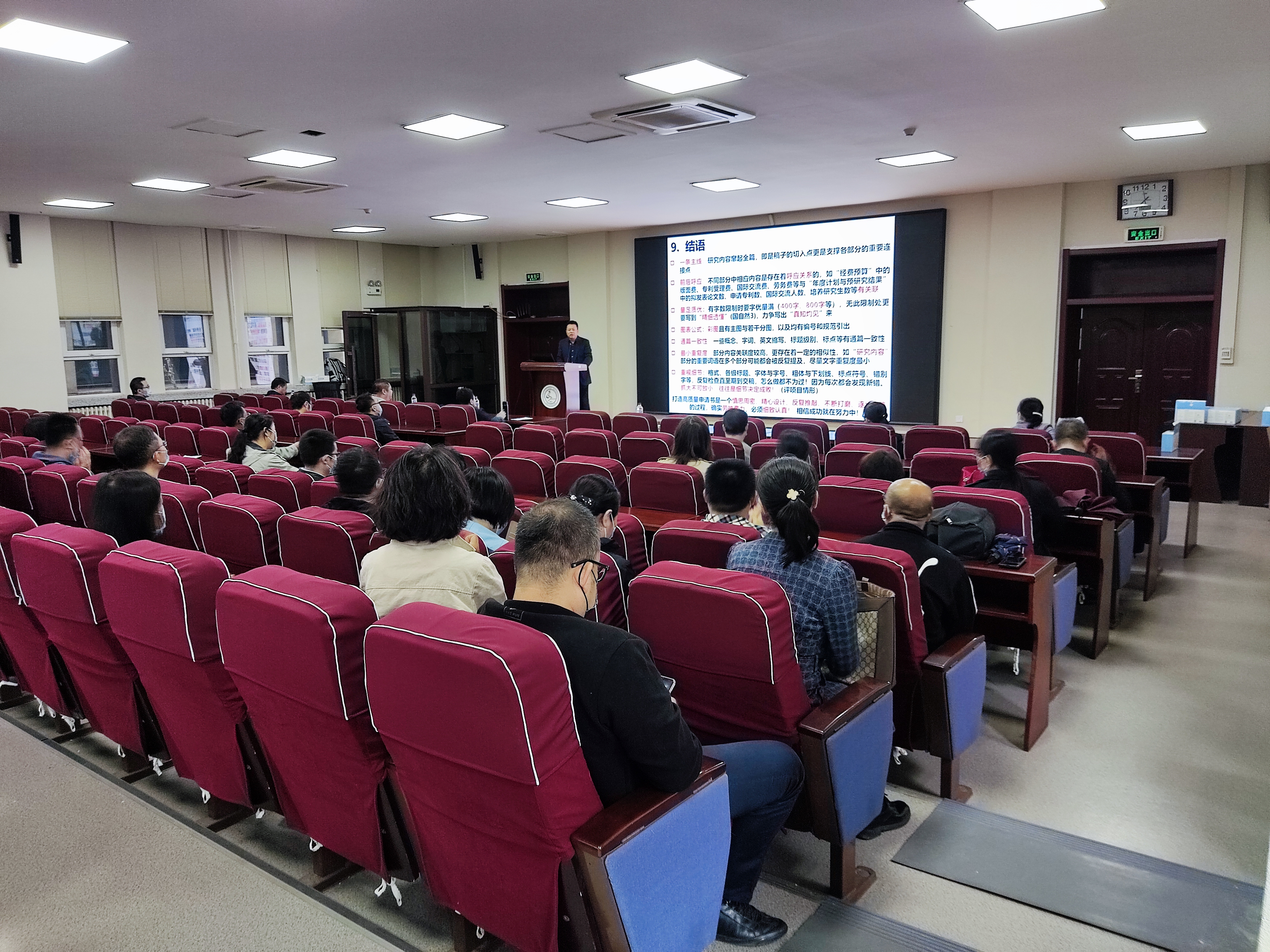 党委书记宫皓宇做了总结,对学院科研工作提出了新要求,勉励全体教师再接再厉,争取在“十四五规划”开局之年和新一轮“一流学科”建设开局之年,在科研工作上取得新突破,为学科建设做出新贡献,并希望学院在2022年度的国家自然科学基金申请工作中取得显著提升。