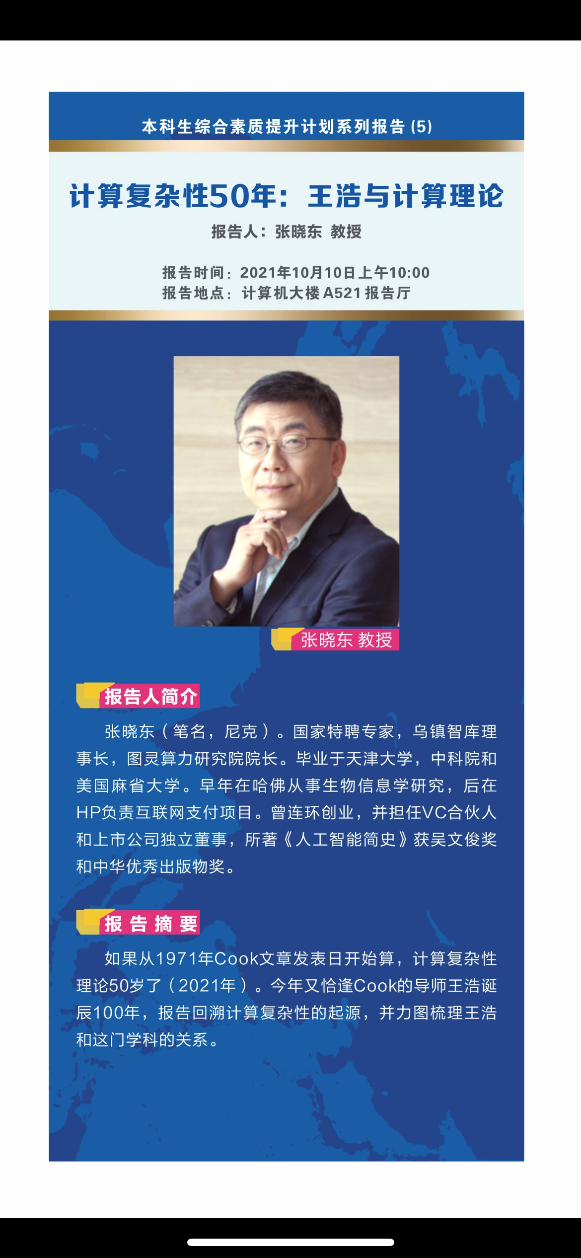 邀请,在吉林大学中心校区计算机楼A521报告厅作了题为“计算复杂性50年:王浩与计算理论”的专题报告,这是本科生综合素质提升计划系列报告的第五场,报告由国产av影片