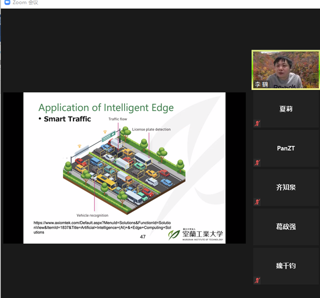 本次讲座,李鹤老师以介绍日本室兰工业大学和室兰工业大学为青年学者提供的良好的学习和科研环境,以及校方为访问学者和留学生提供的优厚的奖学金作为开场,随后李老师简单地介绍了智能边缘计算在处理深度学习任务时会采用的几种优化方法以及对应的适用条件。智能边缘计算作为智能物联网的支撑技术,在我们日常生活中的智能家居,智能交通,智能电网等重要领域可提供的高性能,高可扩展以及低能耗的计算服务。以云计算的基本概念作为基础,探讨边缘计算的发展,并介绍了当前智能边缘计算的研究方向和主要应用领域。从云计算的来源,发展以及组成形式作为导引,探讨边缘计算的产生以及重要的研究成果,引入智能边缘计算的研究问题,研究方法以及几种主要的应用。最后,李鹤老师对智能边缘计算的未来,包括需要面对的挑战以及具有潜力的研究方向等方面进行深入的讨论。讲座内容深入浅出,引人入胜。