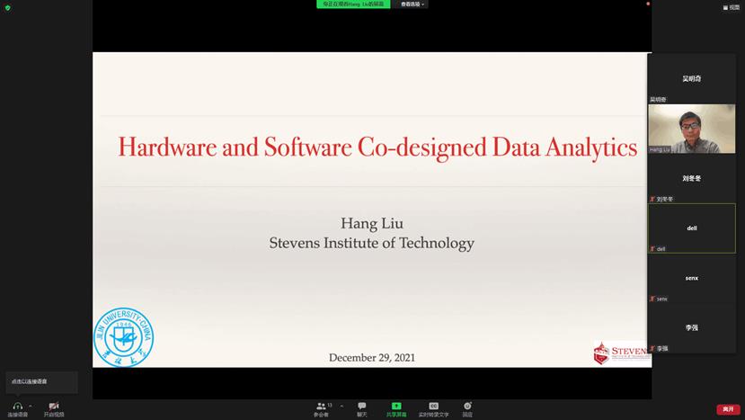 邀请,在Zoom会议作了题为”Algorithm and System Co-Optimized Big Data Analytics”的学术讲座,此次讲座由国产av影片