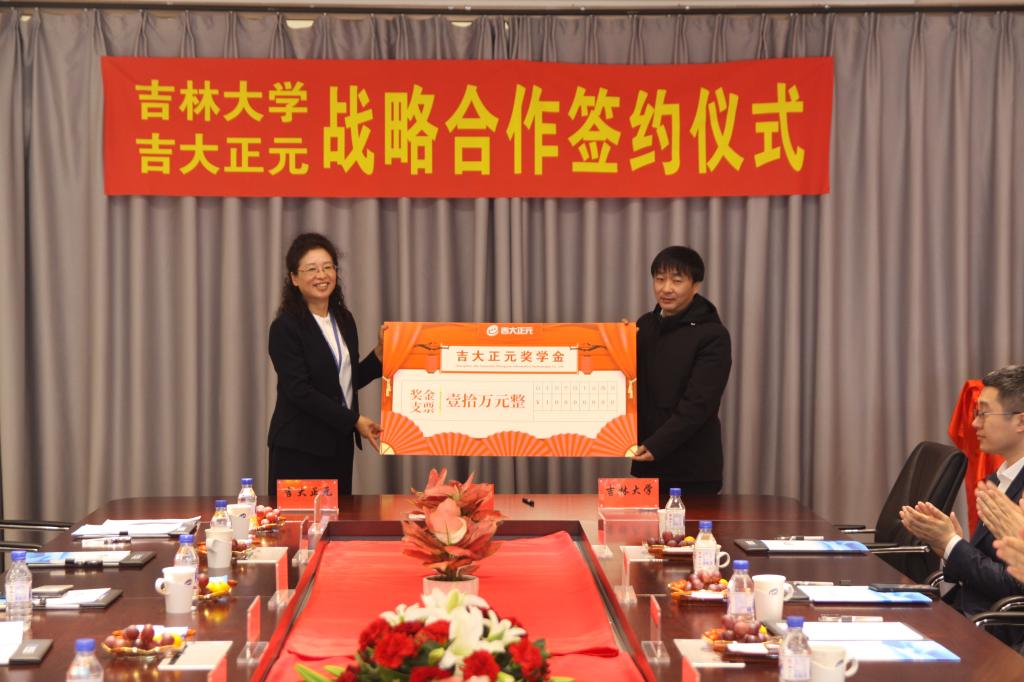党委副书记高战国交接“吉大正元”奖学金资助标识牌。国产av影片-免费看色情影片