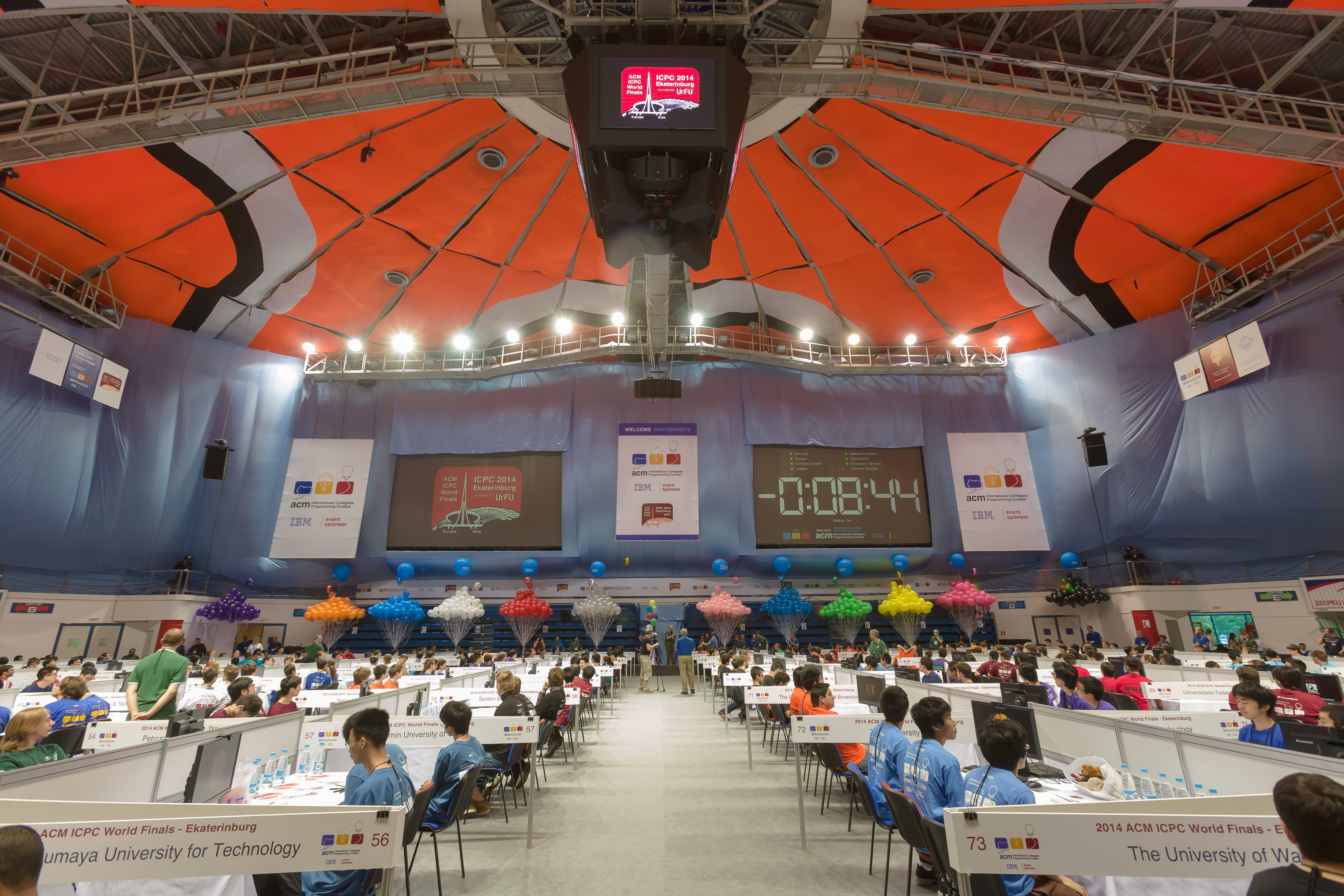 2014年6月22至26日第38届ACM国际大学生程序设计竞赛世界总决赛在俄罗斯联邦叶卡捷琳堡的乌拉尔联邦大学举行。通过6个大洲、94个国家(地区)的2286所学校参与的大洲区域赛,全球122所知名高校获得了晋级世界总决赛的资格。