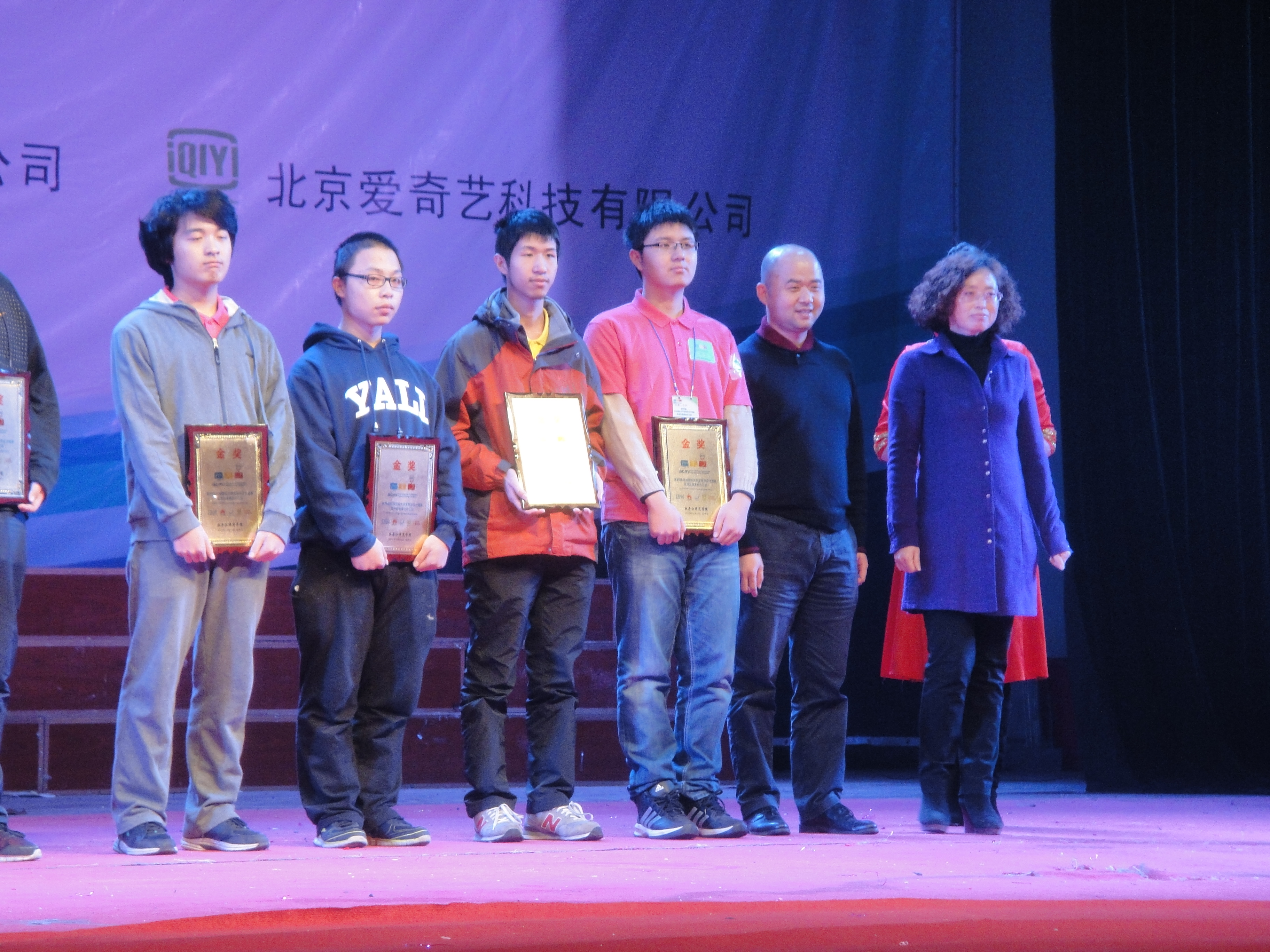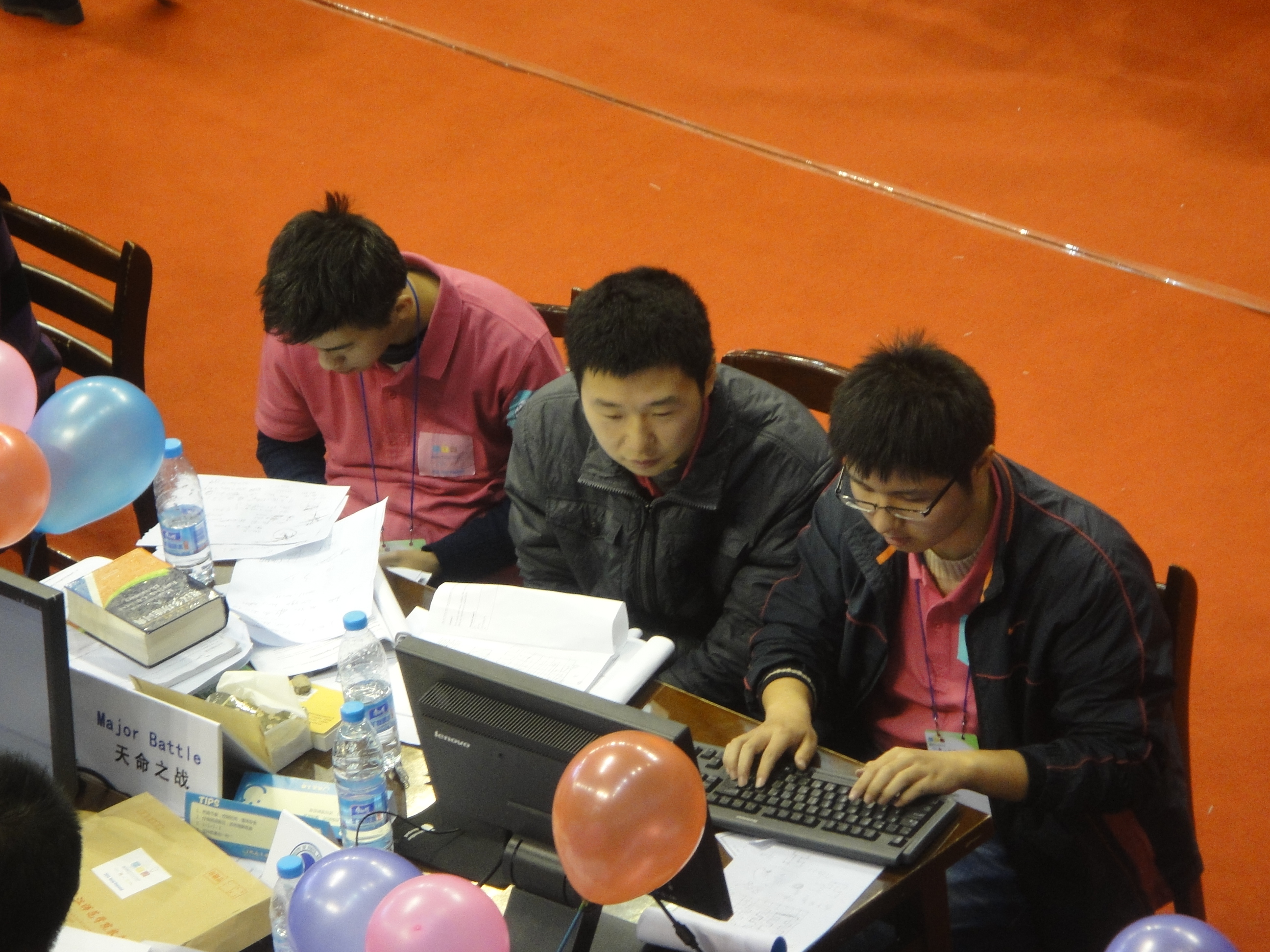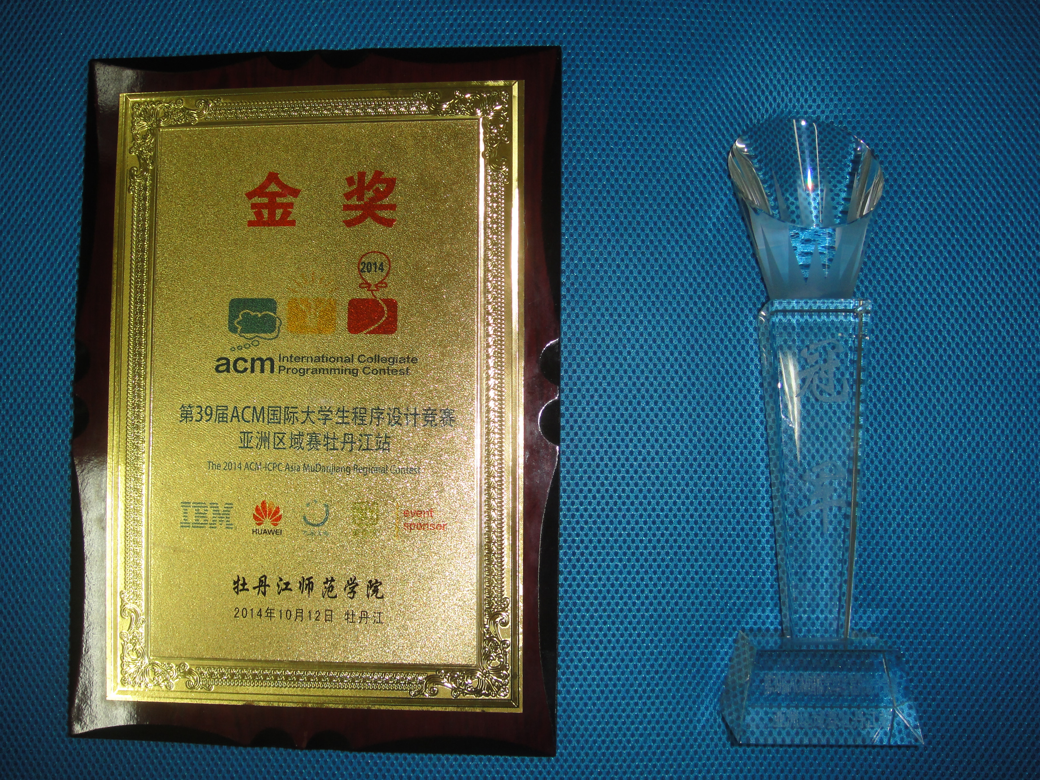 第39届ACM-ICPC国际大学生程序设计竞赛亚洲区域赛牡丹江站比赛于2014年10月11日至12日在牡丹江师范学院举行。清华大学、北京大学、复旦大学、国防科技大学、哈尔滨工业大学等91所高校的154支参赛队参加了该站的比赛。经过激烈的角逐,由我校计算机学院2013级本科生唐家铭、2012级本科生陈海敏和软件学院2012级本科生药剡组成的“天命之战”队力拔头筹,率先解出7个题目,名列第1名,获得冠军。